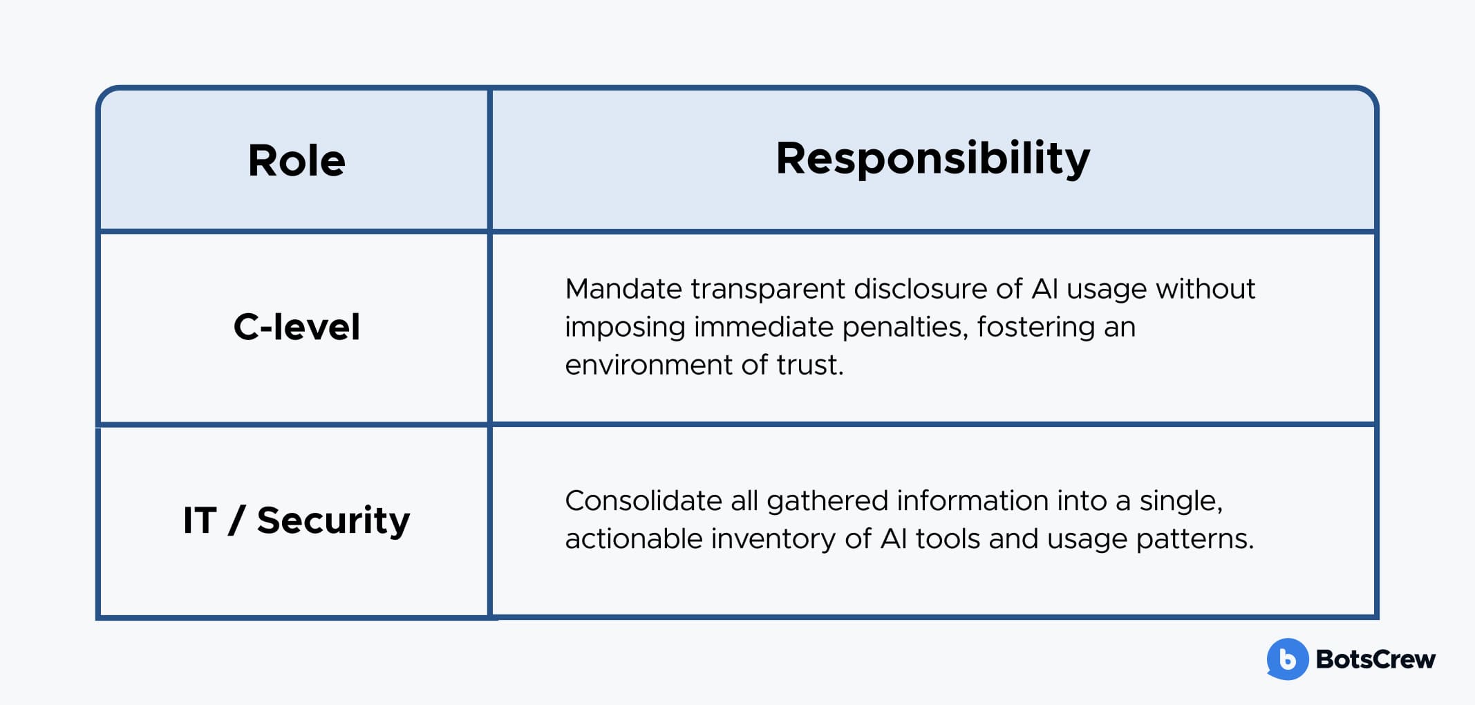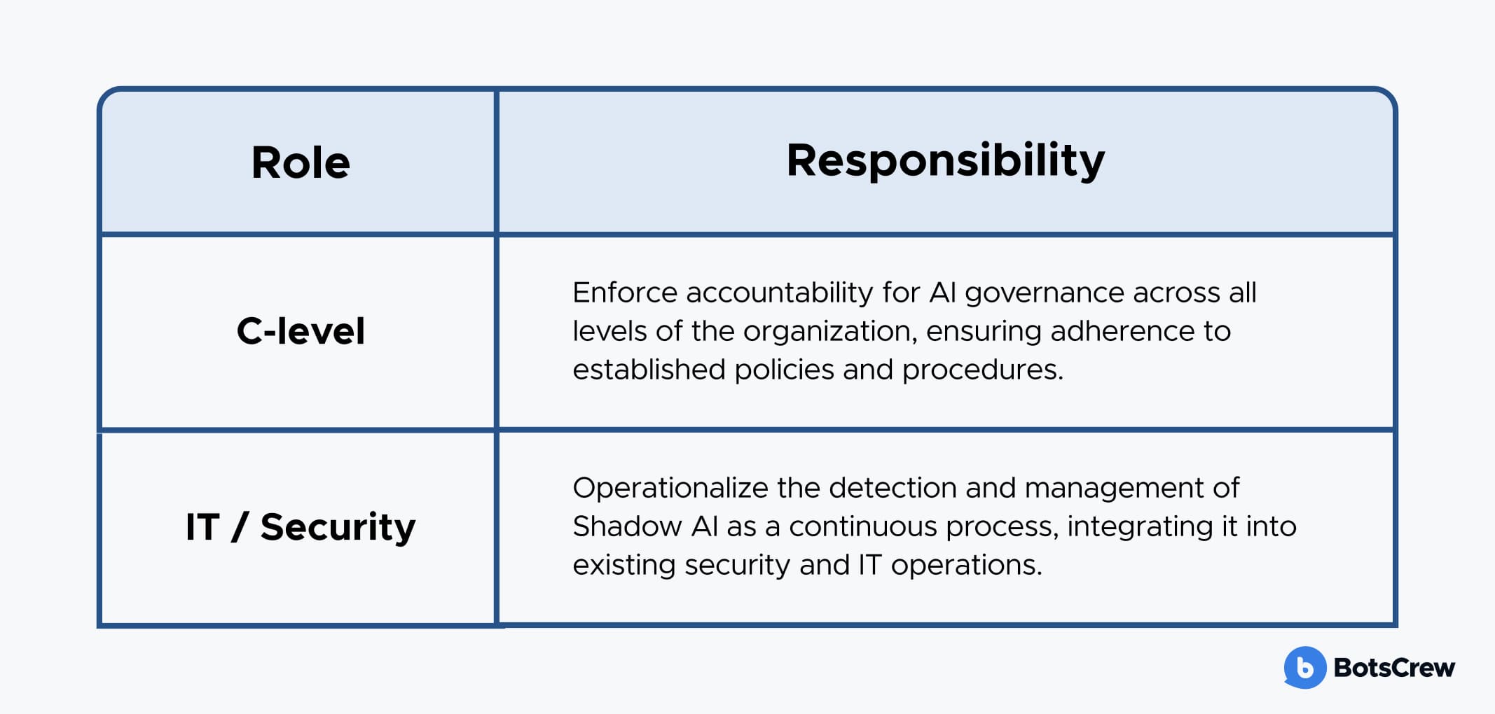 Sustained control over Shadow AI requires strong leadership and operational integration: