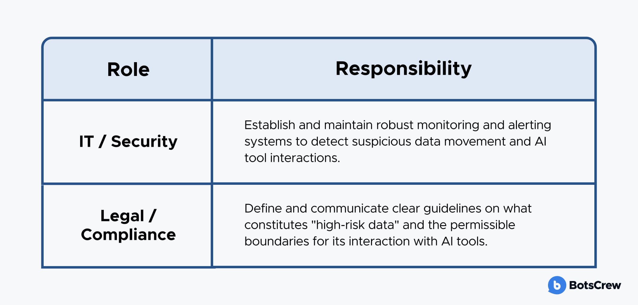Clear AI Governance Ownership. Assign explicit ownership for AI governance, moving beyond vague notions of "shared responsibility." A dedicated individual or team should be accountable.