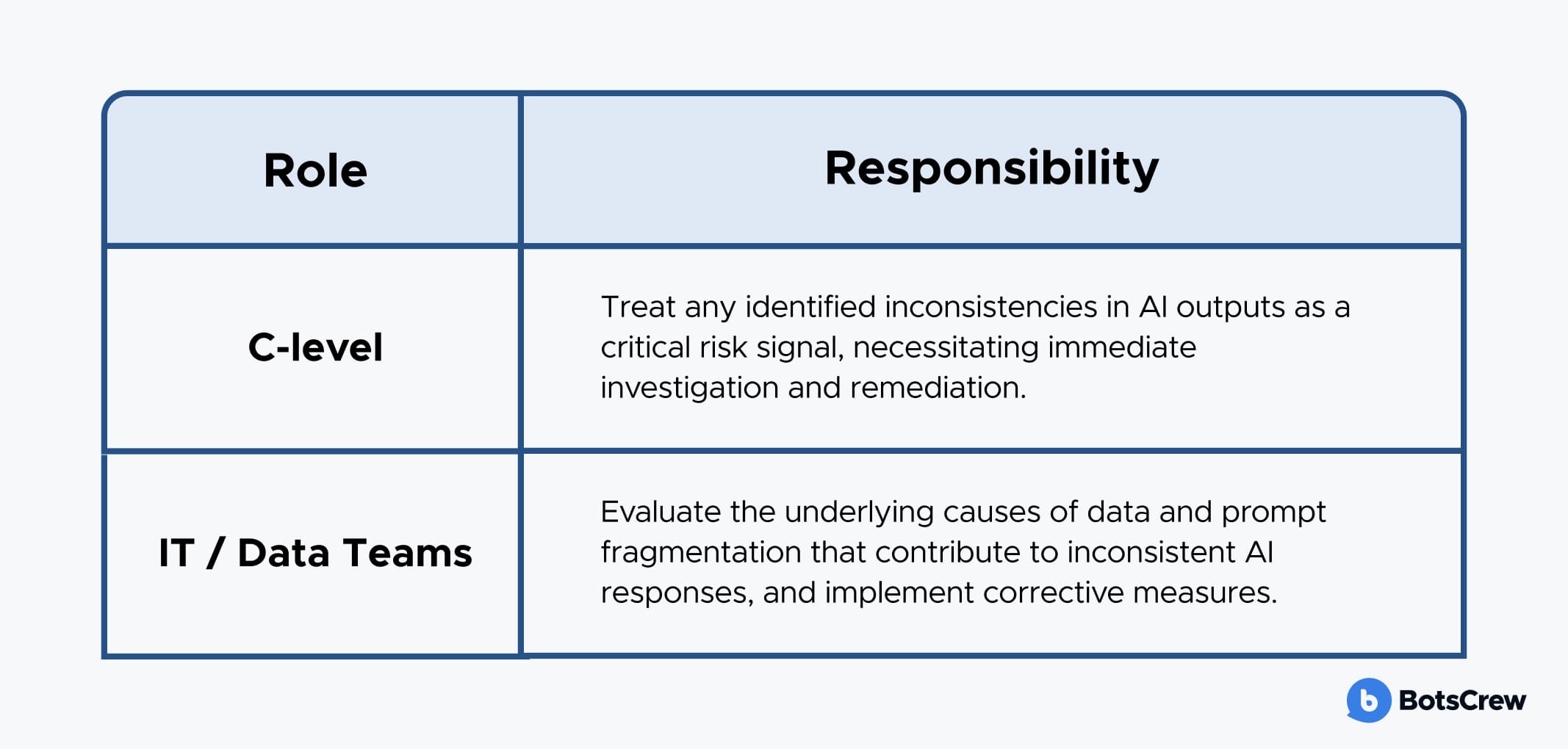 - Inconsistent or contradictory answers generated by different AI tools when presented with the same internal query.