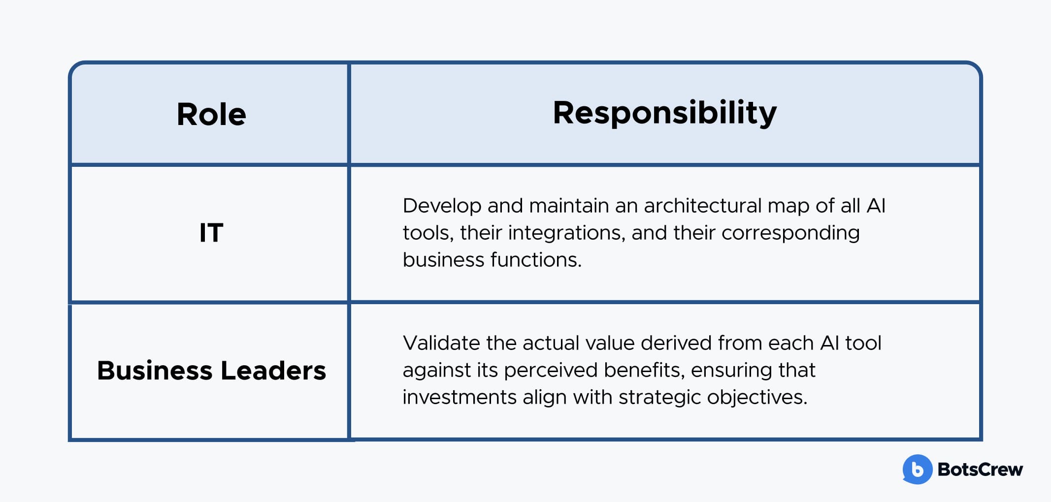 Beyond security and compliance, Shadow AI often leads to inefficiencies through tool sprawl and functional duplication. This phase focuses on rationalizing AI tool usage across the organization. To achieve this, organizations should undertake the following: