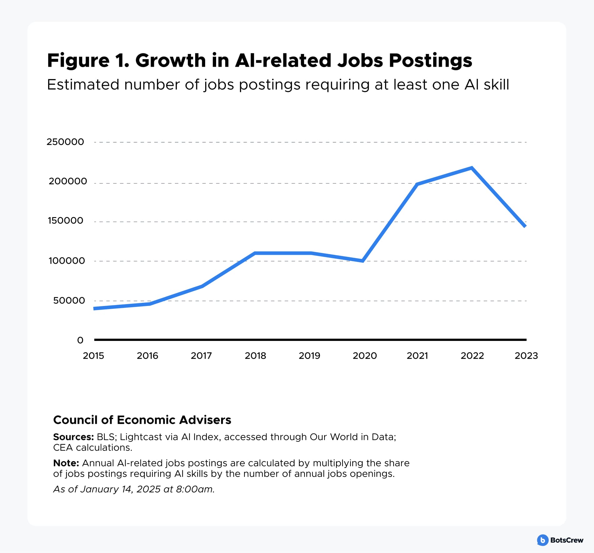 #1. Supply–Demand Imbalance. Universities simply can't produce specialists fast enough. According to Stanford's AI Skills Shortage 2025 Report, the percentage of AI-related job postings in the US reached 1.8% in 2024, marking a 28.6% year-over-year increase. By 2025, job postings doubled — from 40,000 in 2024 to 80,000 — while the number of qualified specialists remains far behind.