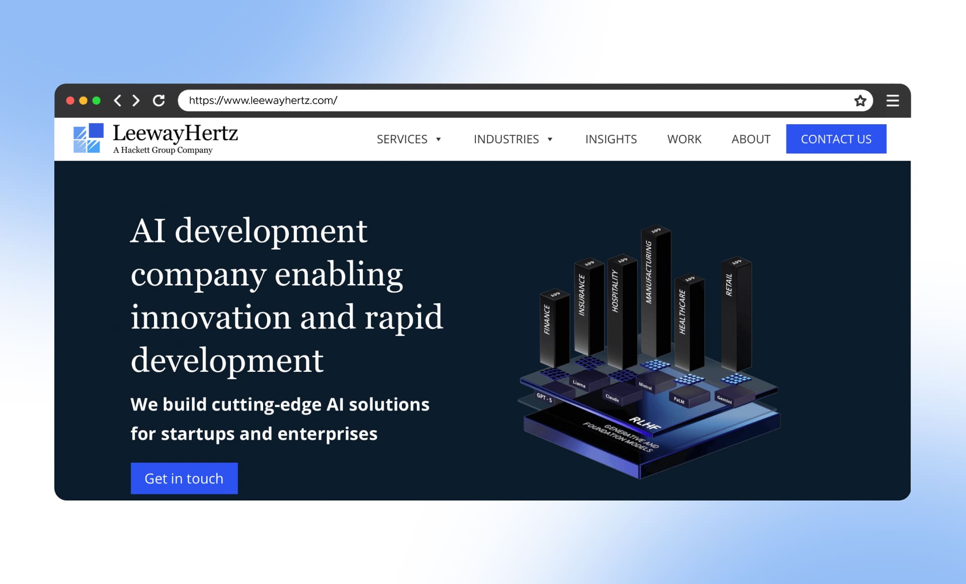 Leeway Hertz, has spent nearly two decades evolving with every major technology wave β from blockchain and IoT to where they've planted their flag today: enterprise-grade generative AI. Their team of 250+ developers, designers, and engineers has delivered over 100 digital solutions for more than 30 Fortune 500 companies, building a portfolio that spans industries where the cost of AI failure is highest β healthcare, finance, and logistics.