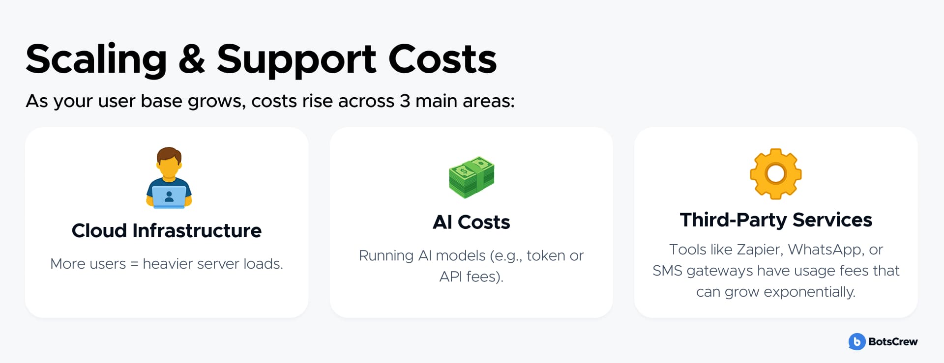#1. Cloud Infrastructure: More users mean more computational power and higher server costs.