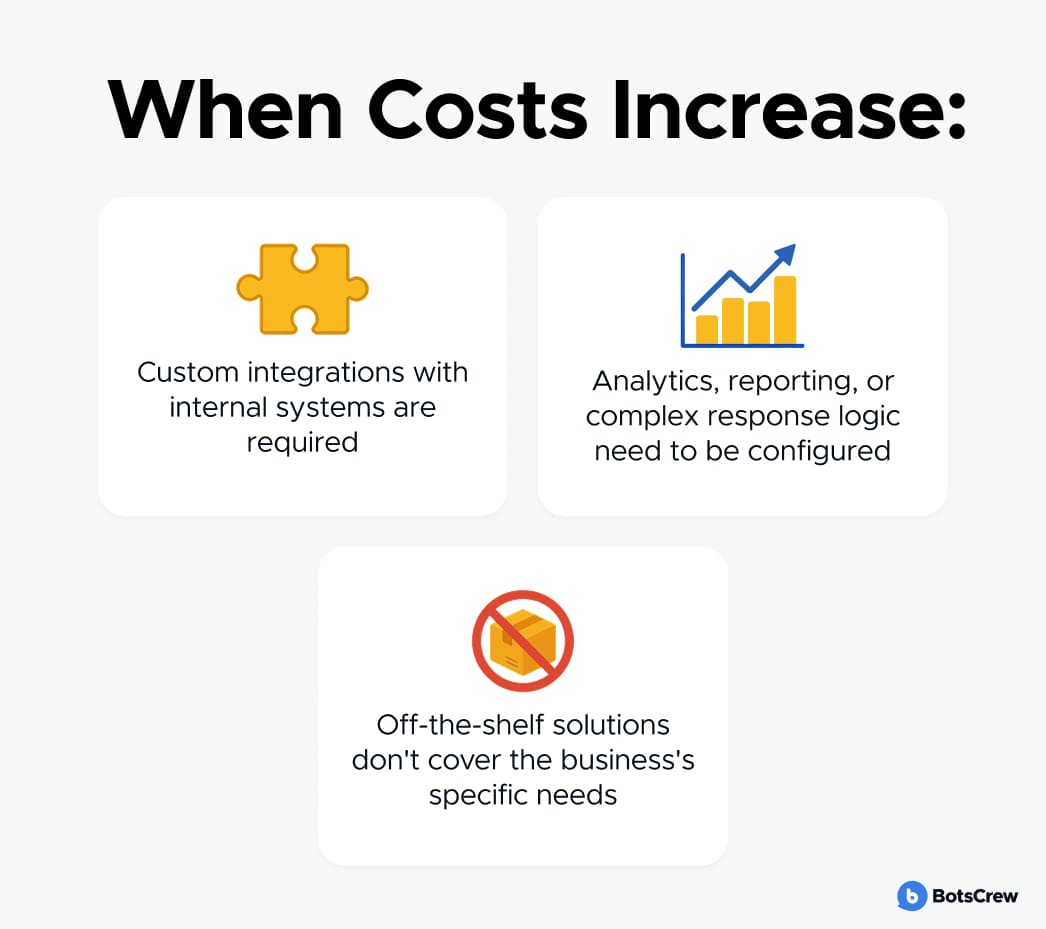 The text-based chatbot, developed at a cost of approximately $20,000, included core conversation flows, CRM integration for personalized responses, multi-channel deployment across web, mobile, and social platforms, and basic analytics to monitor interactions. Adding voice functionality cost around $10,000 and brought in voice recognition, text-to-speech, integration with IVR systems for call routing, and multilingual support.